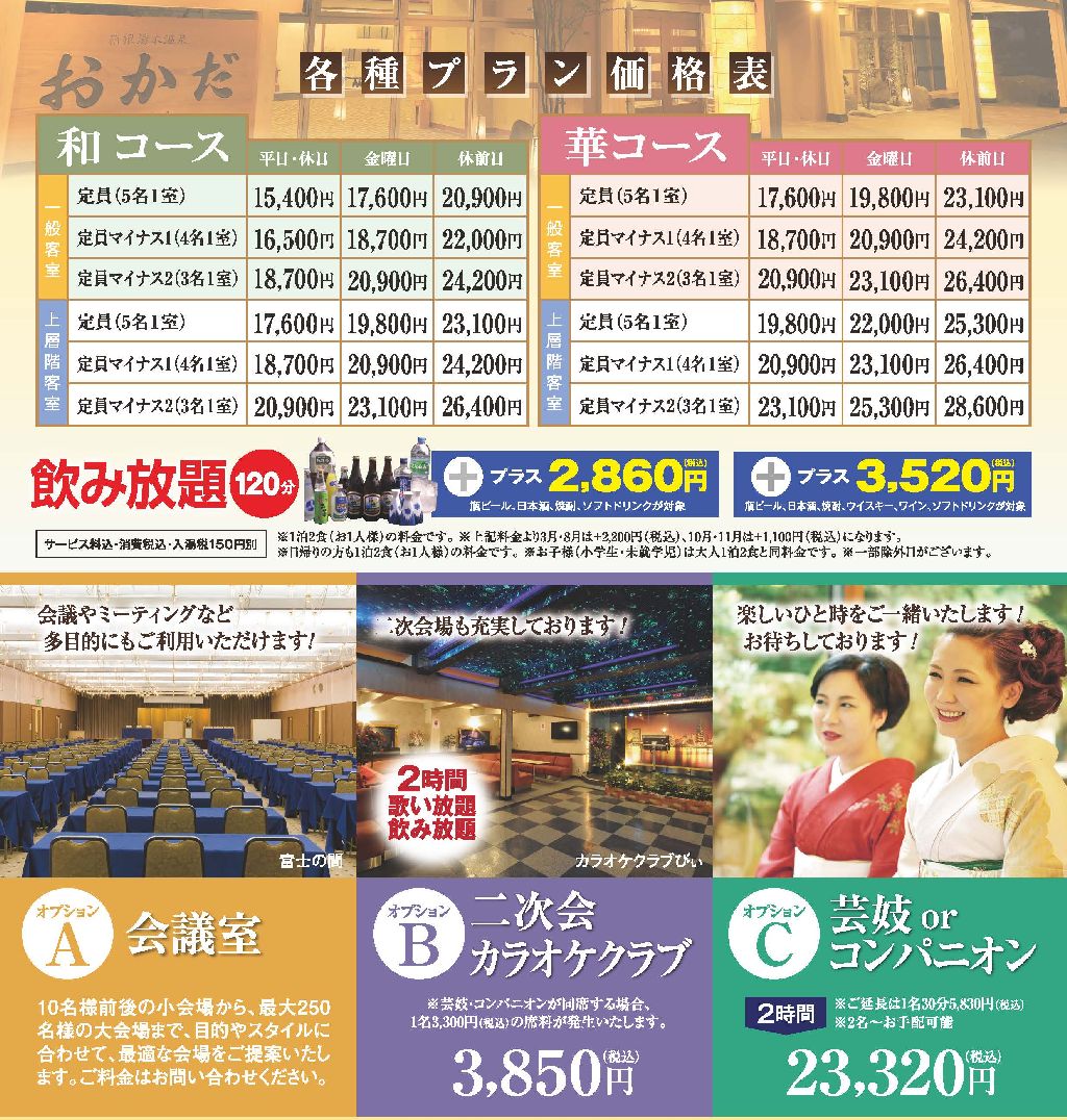 - 料金(サービス料・消費税・入湯税込)